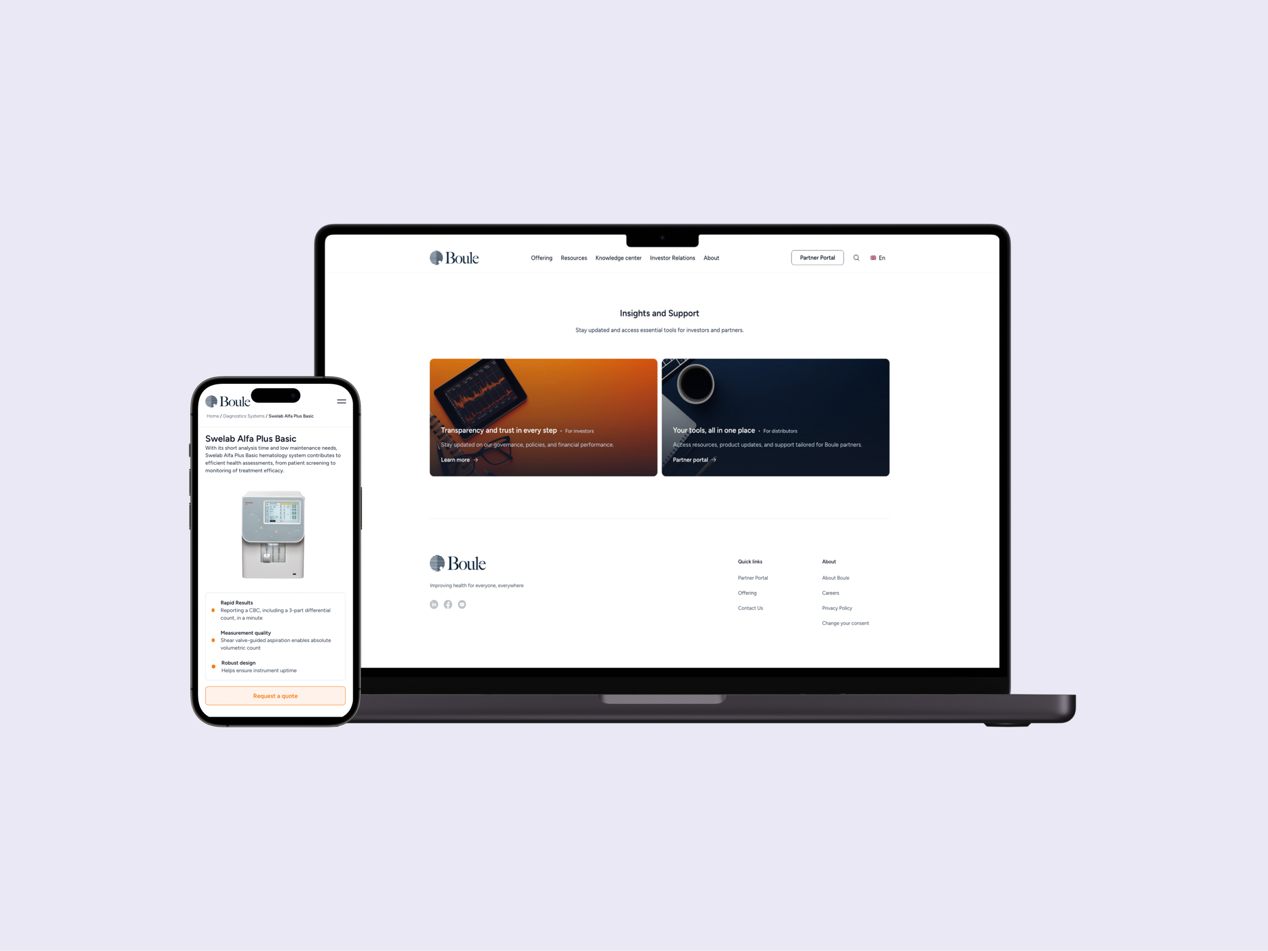 Boule behövde en webbplats som gör det enkelt att hitta i ett omfattande och tekniskt innehåll. Vi byggde en snabb, strukturerad plattform med tydlig sortering av dokument och produktinformation – tillsammans med en omfattande partnerportal integrerad med deras affärssystem.